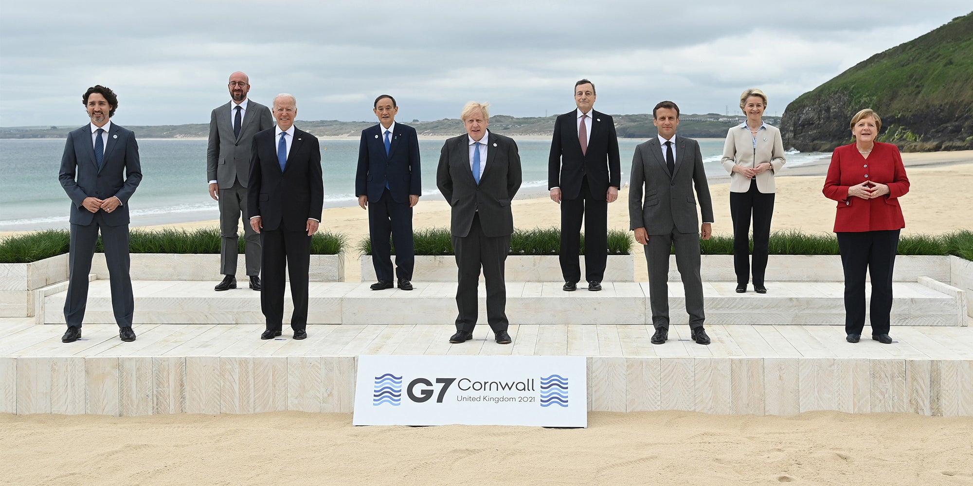 With the family photo being taken outside, the elite group were able to ditch coronavirus face masks as they smiled for the camera. G7 leaders pose for the family photo at the start of the g7 summit. Boris johnson today urged g7 leaders to aim for a more 'feminine' and 'gender neutral' recovery from coronavirus in a bizarre opening speech. The question is what are they actually going to decide when they sit down and have their discussions, whether it's about climate change, the state of the world's economy. Sign in and be the first to comment.